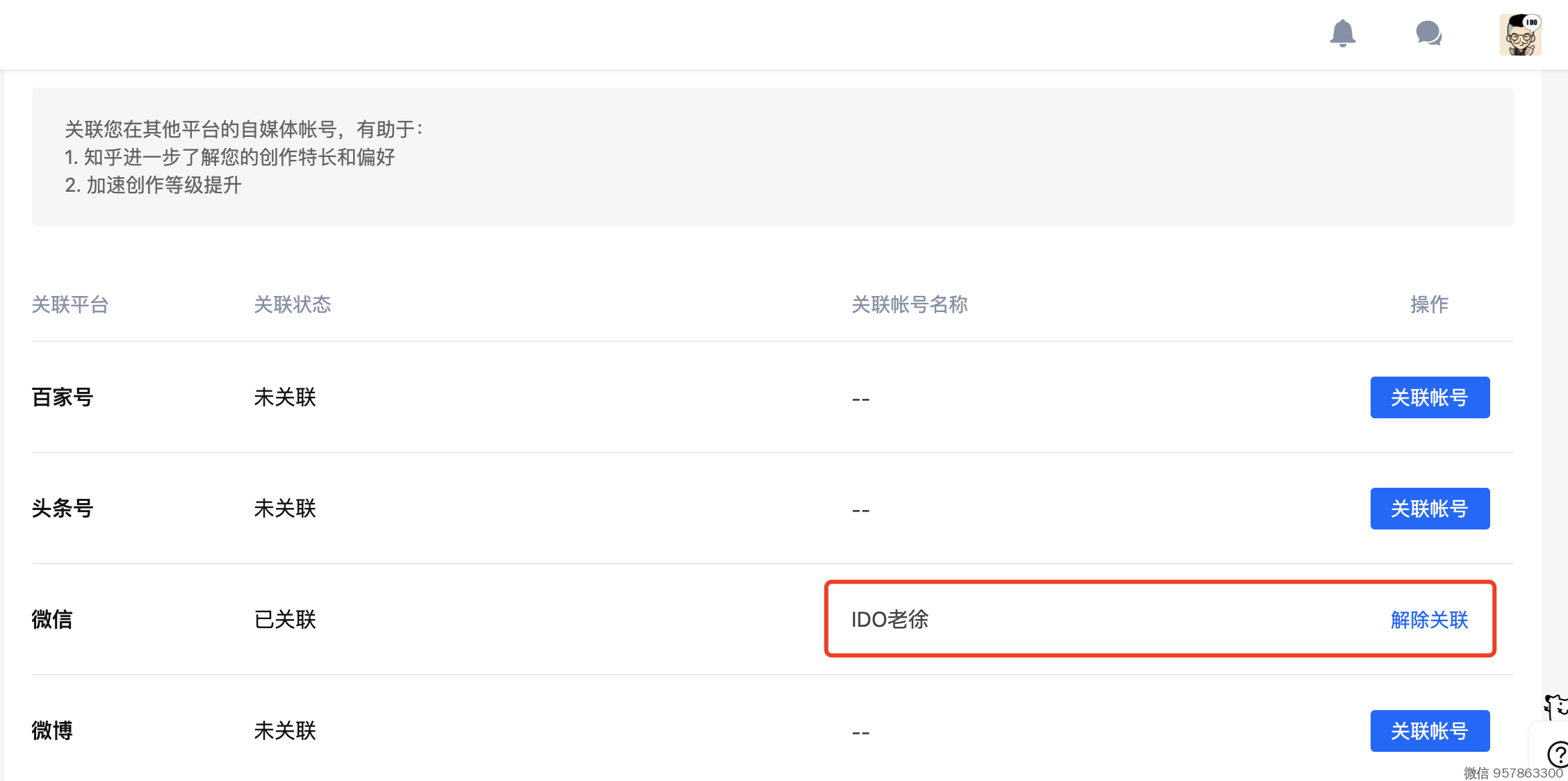 2、点这个链接,进入知乎创作中心 - 账号关联 https://www.zhihu.com/creator/account/associated-account