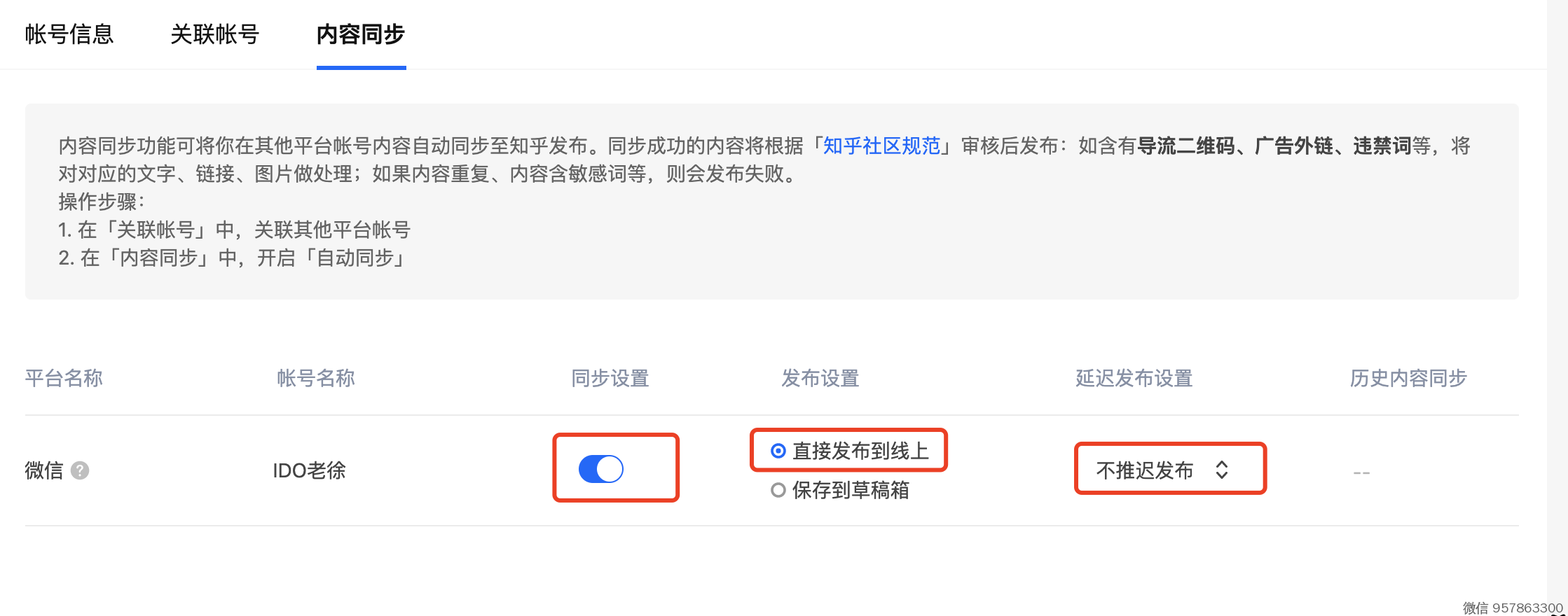 3、开启自动同步 开关 ,点 https://www.zhihu.com/creator/account/content-sync